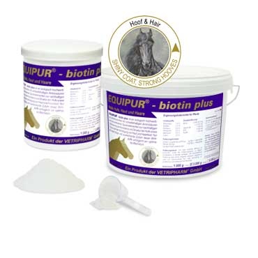 Equipur-biotin plus dzięki współpracy substancji czynnych tzn. biotyny (witaminy H), witaminy B16, aminokwasów zawierających siarkę, miedzi i cynku troszczy się o zdrowie i mocne kopyta jak również oferuje optymalne zaopatrzenia skóry i pokrywy włosowej w substancje odżywcze. Biotin plus optymalizuje jakość kopyta, powodując, iż staje się mocne i elastyczne.