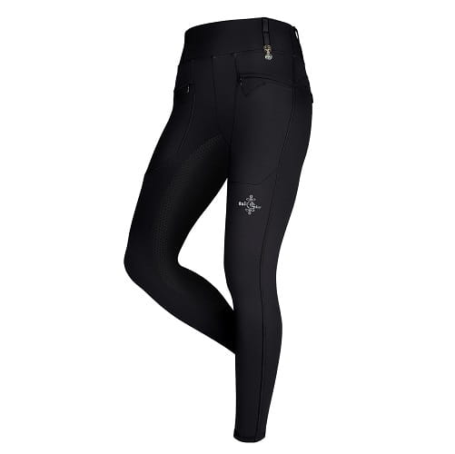 Jeździeckie leginsy z wysokim stanem o unikatowych cięciach. Wykonane z wysokiej jakości dzianiny elastycznej podszytej ciepłym polarem. Trwały, pełny lej z silikonowym nadrukiem zapewnia idealną przyczepność do siodła. Dwie obszerne przednie kieszenie zapinane na zamek oraz dwie imitacje kieszeni z tyłu. Pięć szlufek w pasie, z dodatkowymi blokadami, wspomagające utrzymanie paska we właściwym miejscu. Bardzo wygodne dzięki brakowi szwów z przodu. Mała metalowa zawieszka z logo Fair Play z przodu. Logo Fair Play na lewej nogawce
