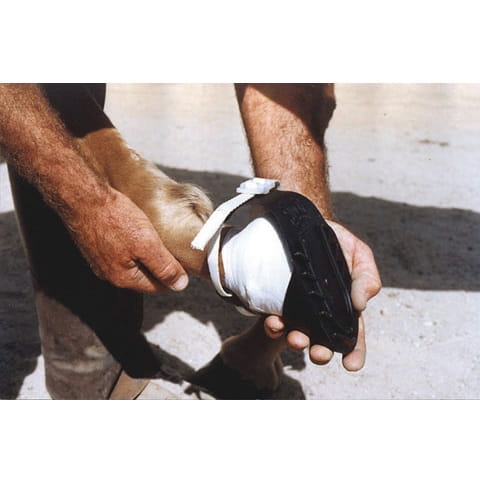 But służy do leczenia obrażeń lub stanów zapalnych kopyta. Wielokrotnego użytku ochraniacz służy do zabezpieczenia opatrunku na kopycie. Wykonany z mocnego poliuretanu, podeszwa wzmacniana. Łatwy do założenia.