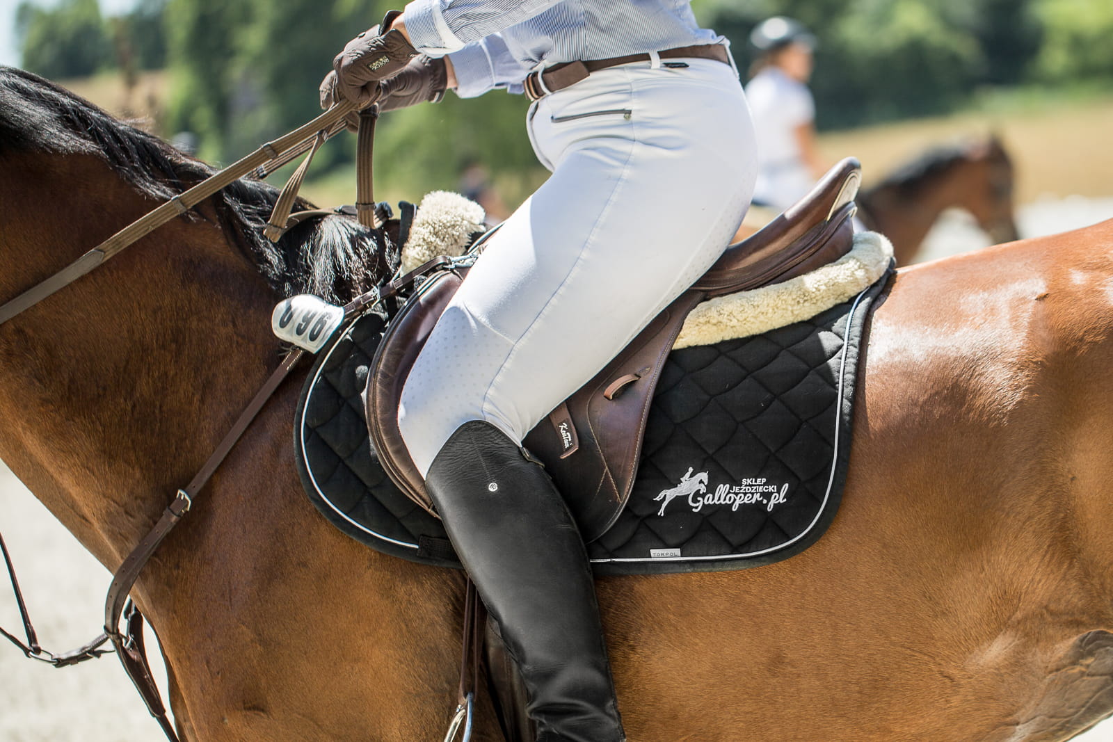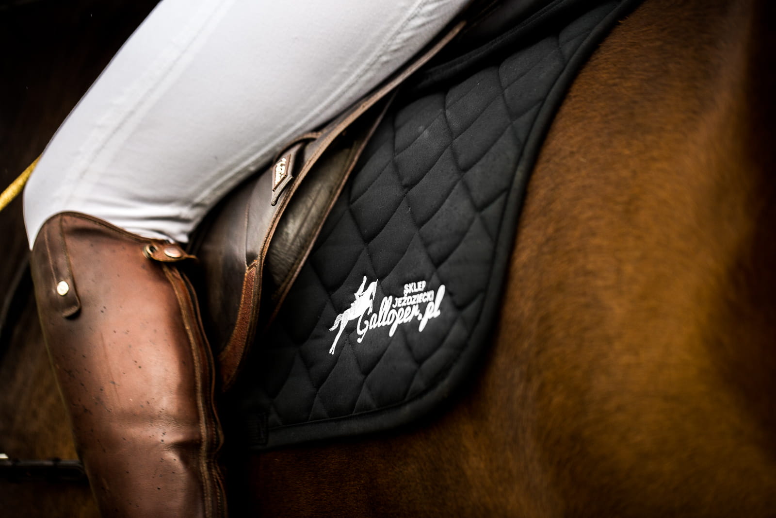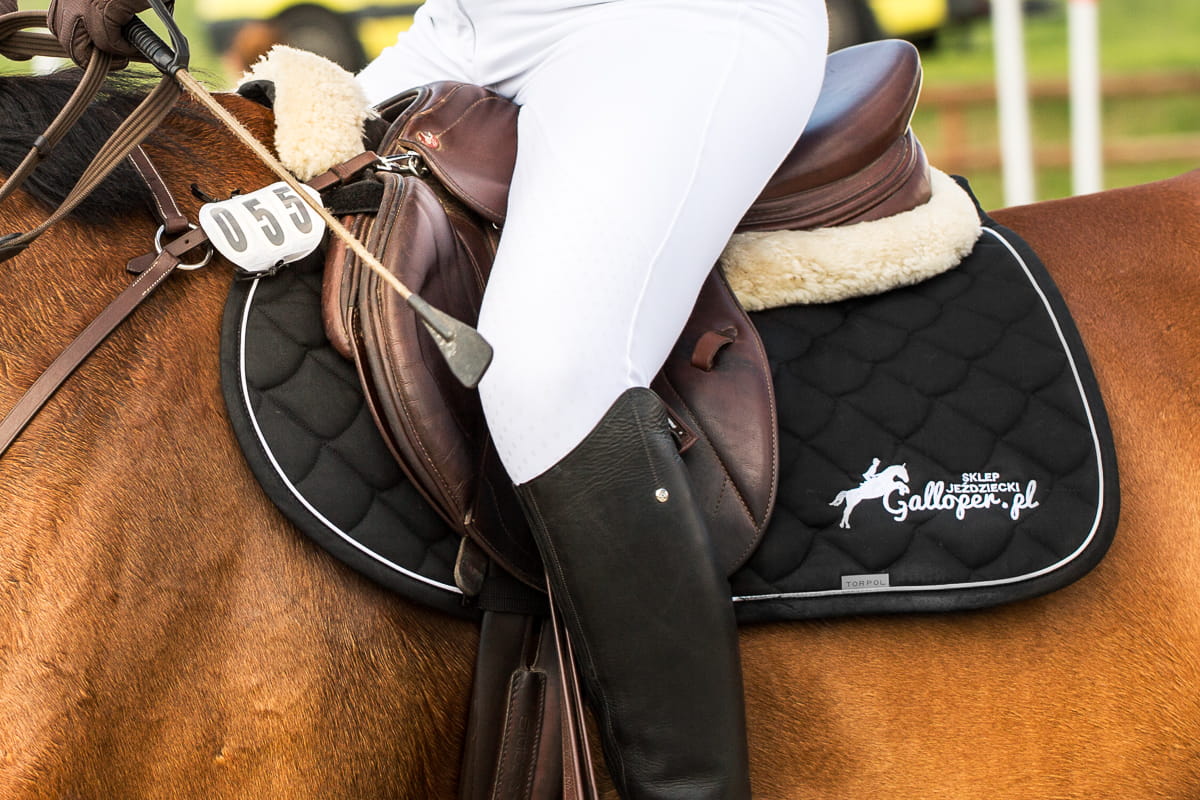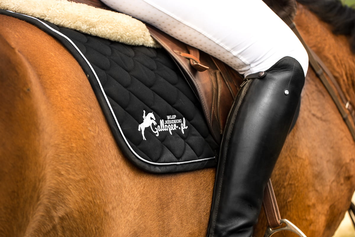 Elegancki czaprak firmy Torpol. Dobrze chłonący pot, wykonany z wysokiej jakości materiałów. Po obu stronach ozdobiony logiem Galloper.