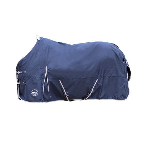 Wykonana z mocnego materiału poliestrowego 600D. Wodoodporna i jednocześnie oddychająca. Cienka i niesamowicie lekka. Posiada podwójne zapięcie na klatce piersiowej oraz pasy krzyżowe pod brzuchem. Sznurek pod ogon oraz klapa dla dodatkowej ochrony. Rozcięcia na łopatkach zapewniają swobodę ruchów. Idealna jako derka przejściowa.