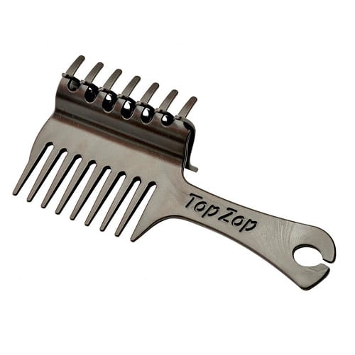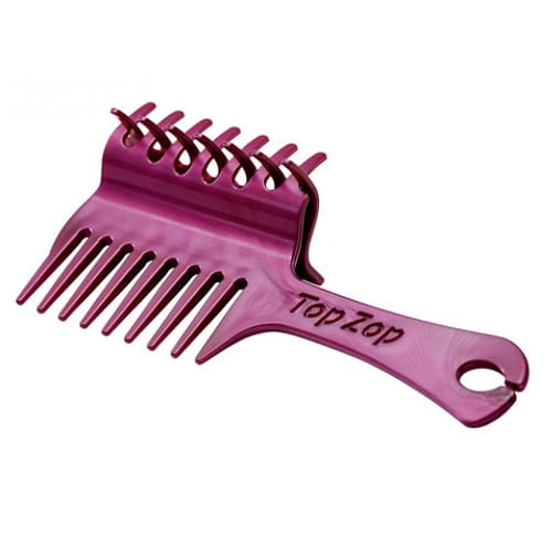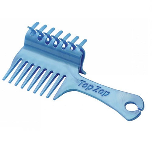 Praktyczna pomoc przy zaplataniu grzywy, grzebień z tworzywa sztucznego z klamrą do przytrzymywania grzywy podczas zaplatania. Na rączce uchwyt na gumki. Nadaje się dla osób prawo- i leworęcznych.