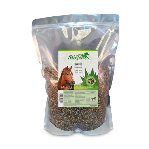 Całe nasiona konopi, które działają korzystnie na zdrowie koni pod wieloma względami. Wzmacniają układ odpornościowy, poprawiają stan skóry, sierści i kopyt. Łagodzą stany zapalne oraz choroby mięśni.