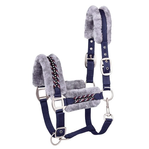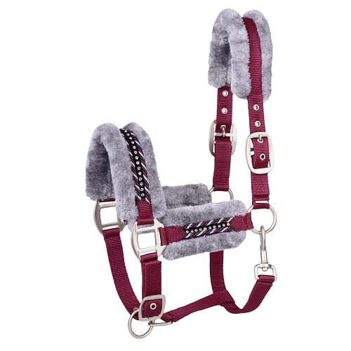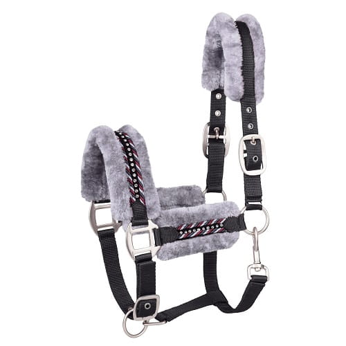 Bardzo elegancki kantar wykonany z mocnej pouliueratanowej taśmy. Paski policzkowe, potyliczny oraz nachrapnikowy podszyte miękkim, wysokiej jakości sztucznym futrem. Potrójnie regulowany. Ozdobiony podwójnym sznurkiem I kryształkami. Wytrzymałe okucia w kolorze satynowym