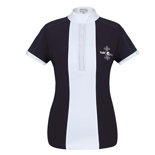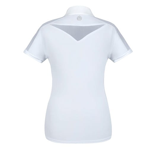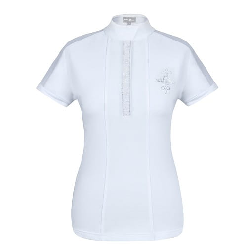 Koszulka konkursowa z krótkim rękawem wykonana z elastycznej, oddychającej dzianiny technicznej. Na rękawach posiada wstawki z siateczki, dzięki czemu jeszcze bardziej przepuszcza powietrze. Plisa polo wykończona ozdobną, perłową taśmą. Jest idealnym dopełnieniem fraka Valentina Pearl.