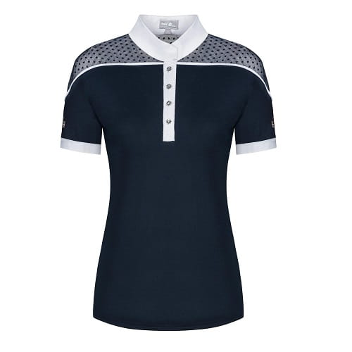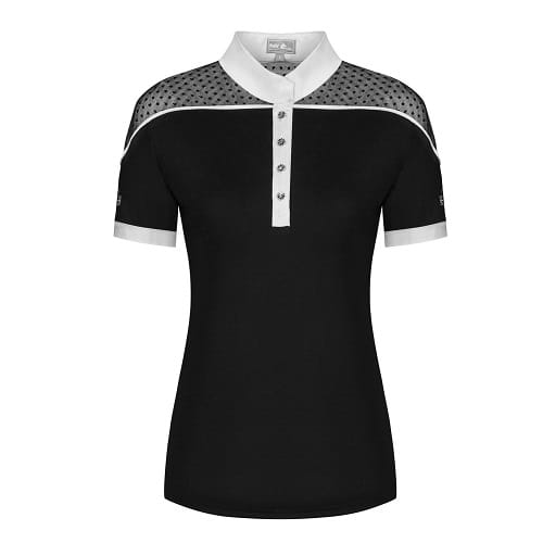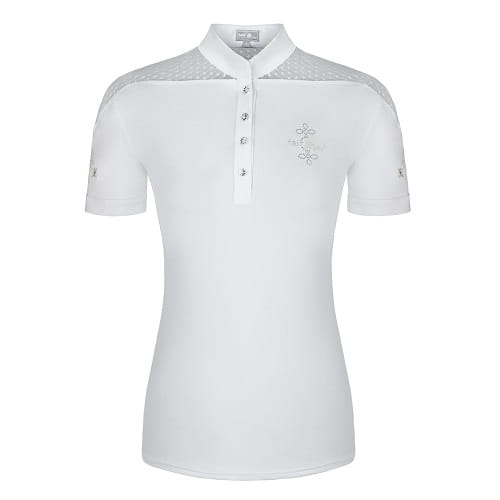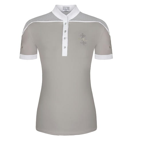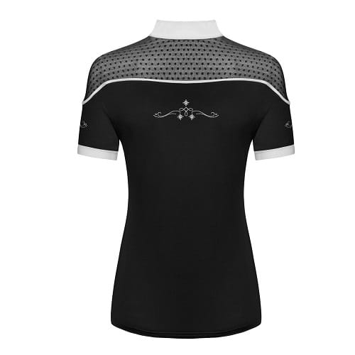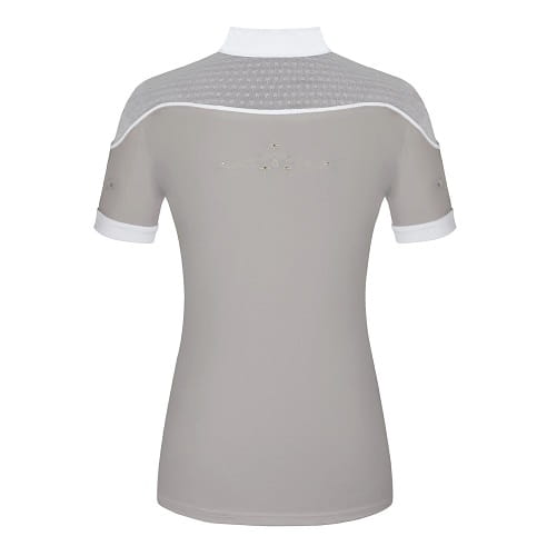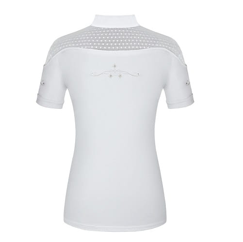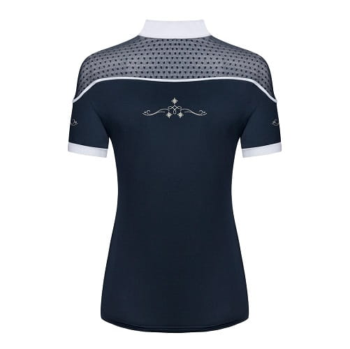 Szykowana i bardzo kobieca. Uszyta z elastycznej, oddychającej dzianiny technicznej, odprowadzającej wilgoć na zewnątrz. Zapinana z przodu na ozdobne guziki z kryształkami. Wstawki z ozdobnej siatki dla lepszej cyrkulacji powietrza. Ozdobiona dyskretnymi haftami z dżetami z przodu, z tyłu oraz na rękawkach