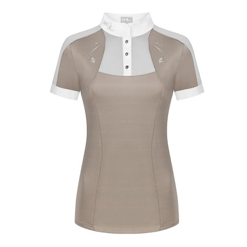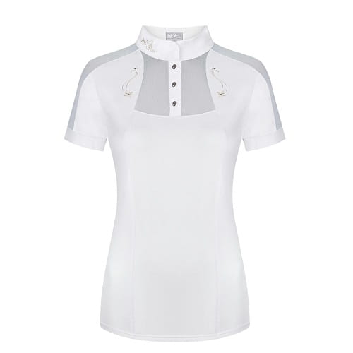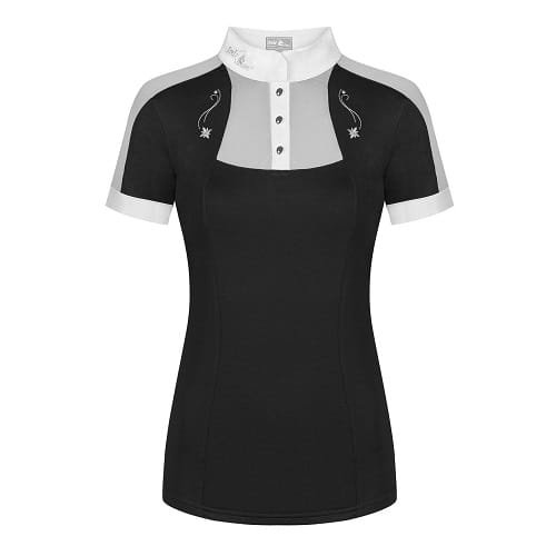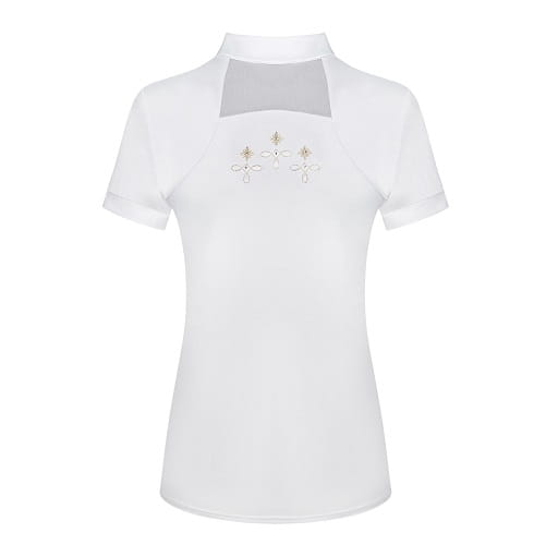 Połączenie elegancji i sportowego szyku. Wykonana z elastycznej, oddychającej dzianiny technicznej, odprowadzającej wilgoć na zewnątrz. Wstawki z elastycznej siatki z przodu, na rękawach i na plecach, zapewniające maksymalną przepuszczalność powietrza. Ozdobiona dyskretnymi haftami z dżetami z przodu, z tyłu oraz na stójce