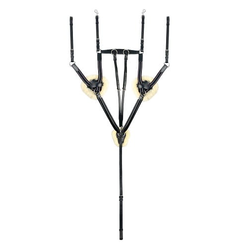 Wysokiej jakości napierśnik wykonany z naturalnej skóry. Dzięki elastycznym wstawkom i możliwości podpięcia w pięciu miejscach, umożliwia precyzyjne dopasowanie i regulację oraz rozkład nacisku gwarantując komfort. Posiada odpinany wytok w miejscach nacisku podszyty owczą skórą. Okucia wykonane ze stali nierdzewnej