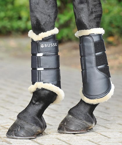 Treningowe ochraniacze spełniające najwyższe wymagania. Wnętrze i wszystkie brzegi wyłożone grubym i miękkim syntetycznym futrem, na zewnątrz mocna, zmywalna sztuczna skóra (Kunstleder) z dodatkową osłoną. Idealnie zastępują bandaże - proste w użyciu, wewnątrz miły dla skóry materiał. W zależności od rozmiaru dwa lub trzy elastyczne rzepy zapewniają dobre dopasowanie ochraniaczy. Nadają się na kończyny przednie i tylne, dla tylnych należy z reguły wybrać ochraniacze o jeden rozmiar większe niż dla przednich.