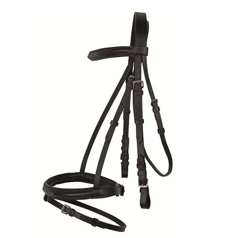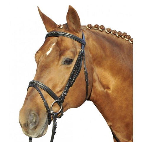 Wykonane z dobrej jakości skóry, szyte ręcznie Naczółek i nachrapnik zdobione kontrastującymi przeszyciami. Nachrapnik kombinowany. Część nosowa i potyliczna miękko podszyte. Matowe srebrne sprzączki. W komplecie z wodzami parcianymi ze stoperami. Bez wędzidła.