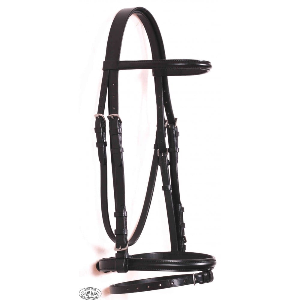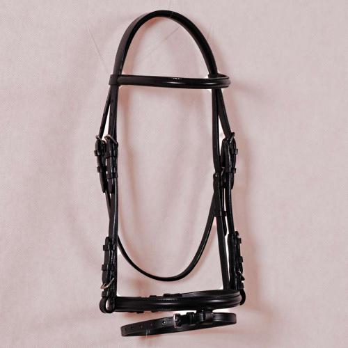 Wykonane z najwyższej jakości skóry oraz okuć nierdzewnych. Pasek podgardlany regulowany jest po obu stronach. Klasyczny design dopełnia całości. Posiada dużą możliwość regulacji. Sprzedawane bez wodzy.