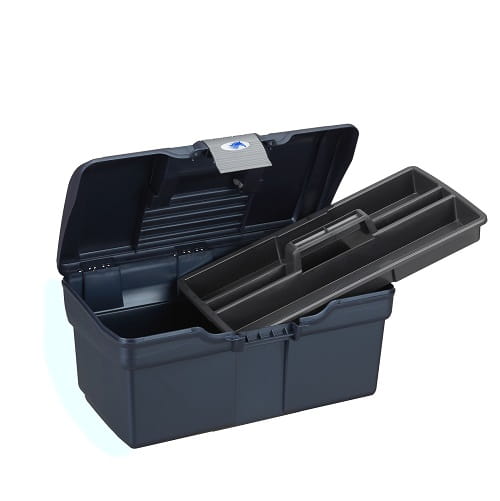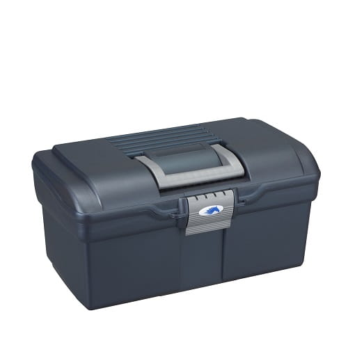 Mała skrzynka na szczotki. Wykonana z polipropylenu. Posiada wyjmowaną półeczkę z uchwytem. Idealna do każdej stajni!
